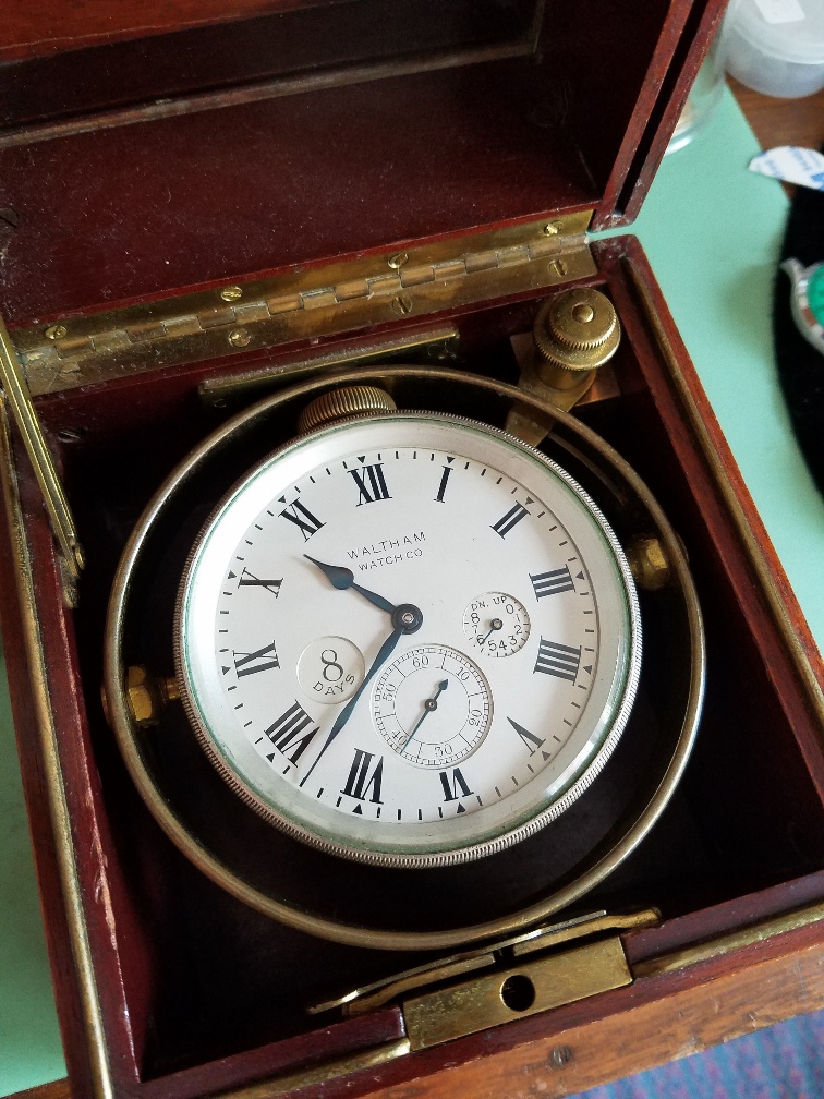 There is a lot of information on the Waltham that I'm seeing now. These clocks were the first mounted chronometers purchased by the Naval Observatory. These were standard 8 day 7 jewel car clock movements but were made to the observatory's standards like having an upper diamond cap jewel, gold balance, double roller escapement and sapphire roller jewel.