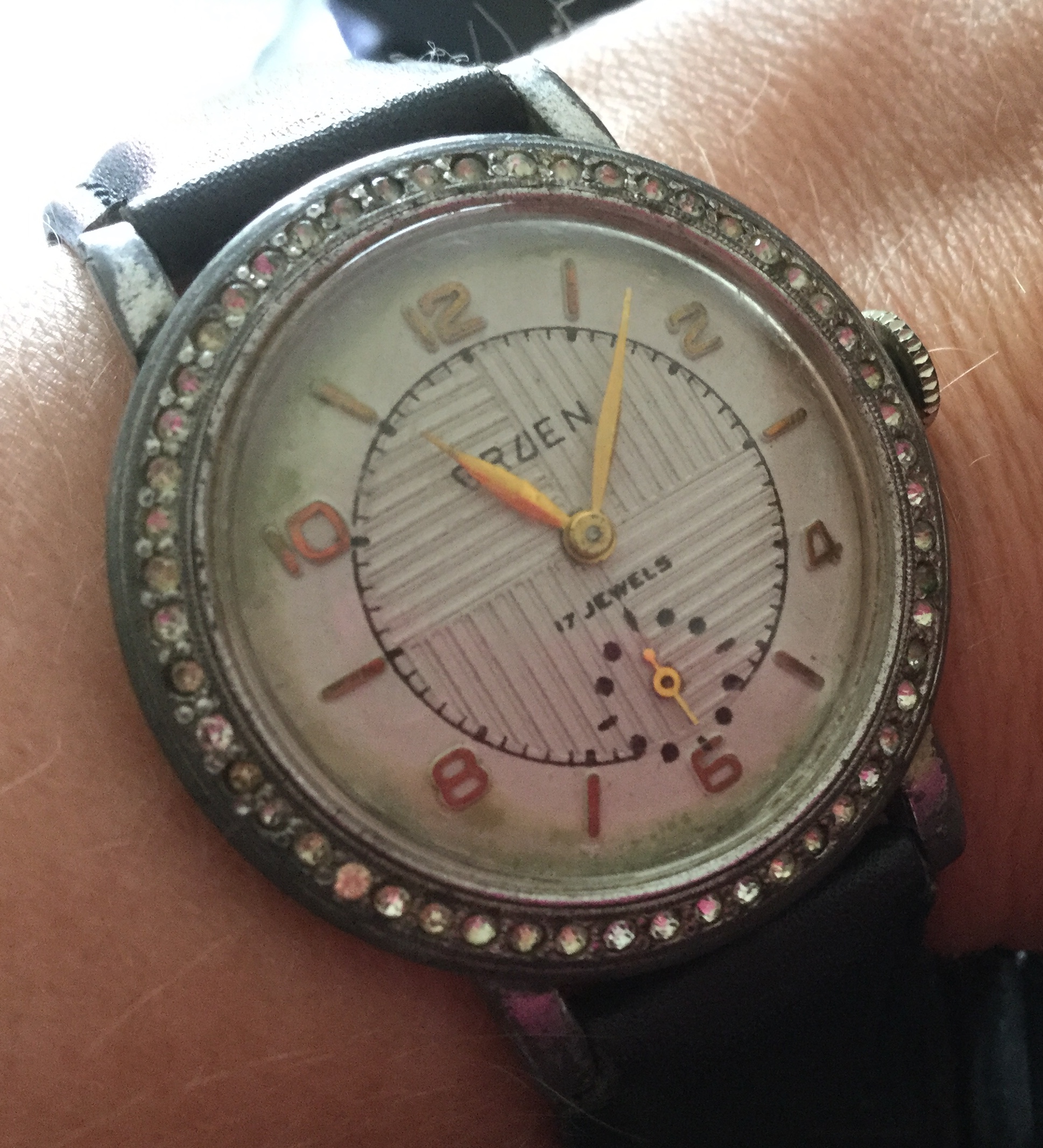 The movement is a 3351, the case is made by Jonell, style number is 855. All valid markings on the case back there is no doubt that this is not a Frankenwatch. It can be dated towards about 1954 by the serial number which would be the 80th anniversary year of Gruen. So I think that the 80 diamonds are not a coincidene. Has anyone ever seen this model and can ID it?