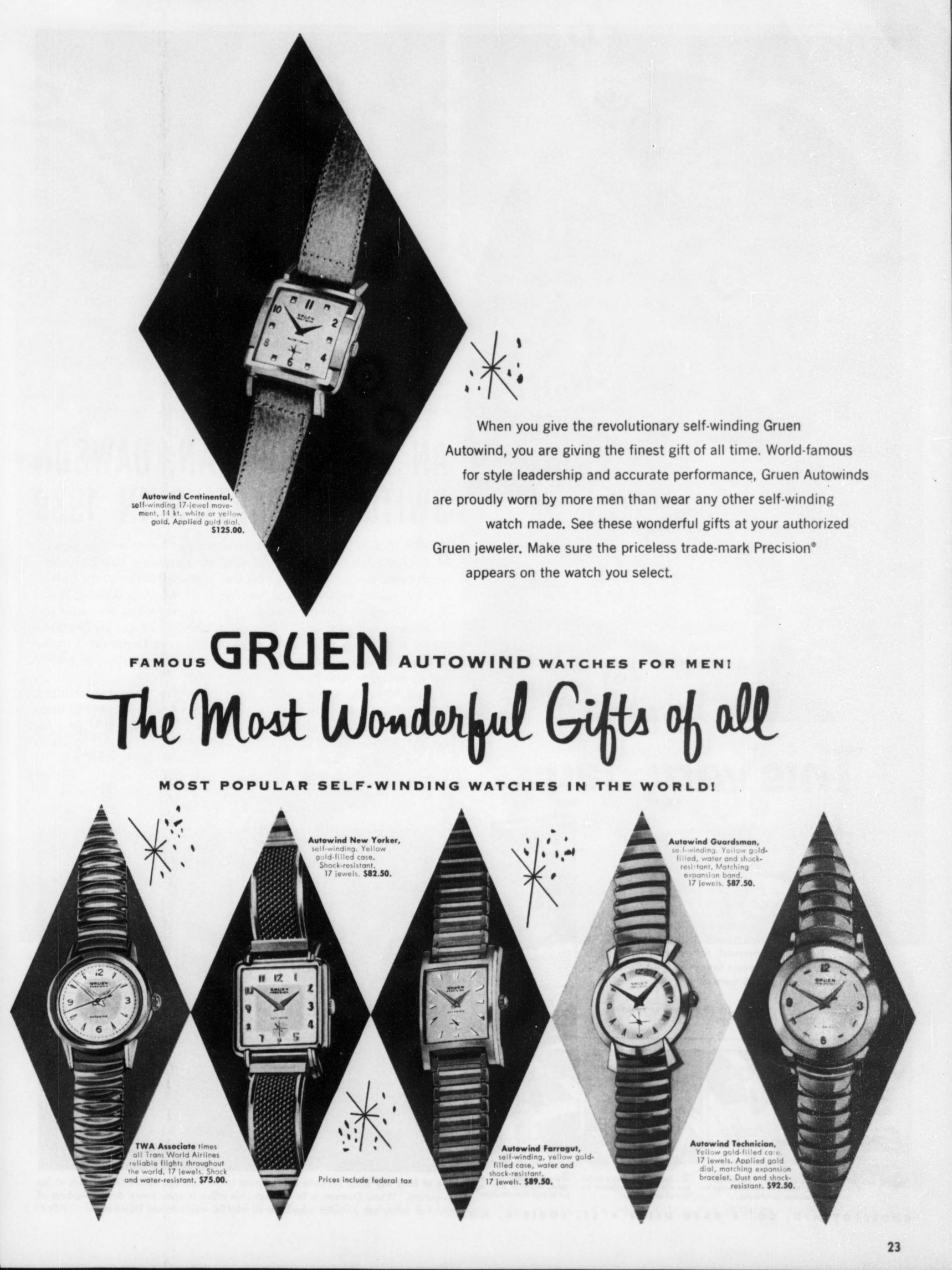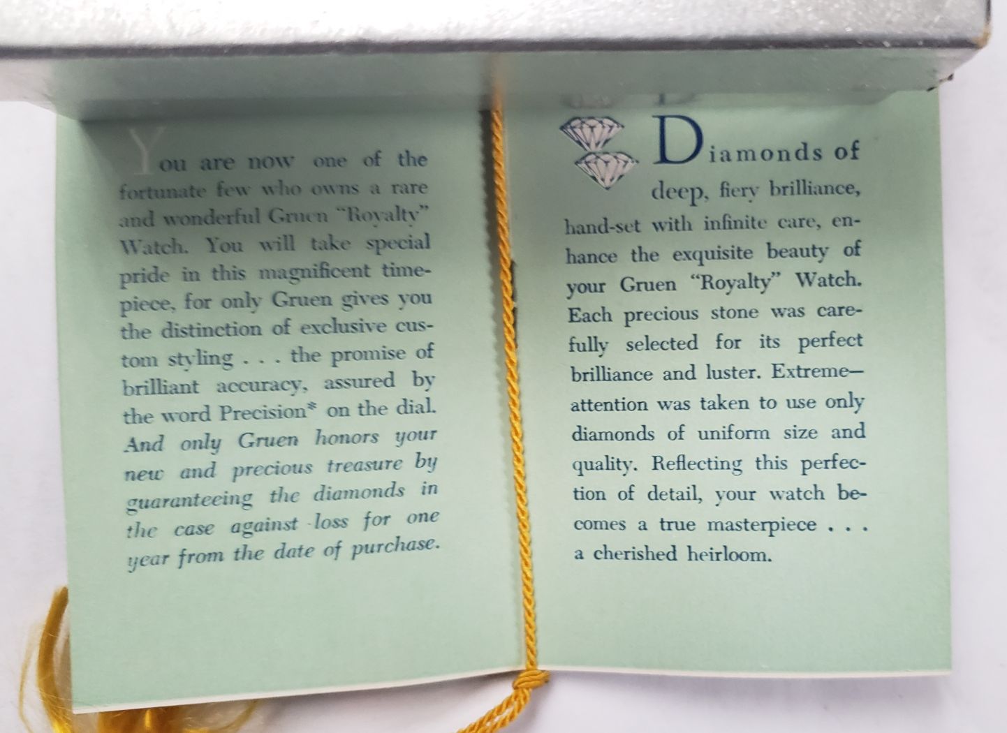I have not yet been lucky to find the hoped for advertisement, there it is! A year later than anticipated, but you wer absolutely correct, an anniversary watchw with its 80 diamonds indicating the 80 years of Gruen. Not part of the Anniversary series but part of the Royalty family and it is even called the "Anniversary".