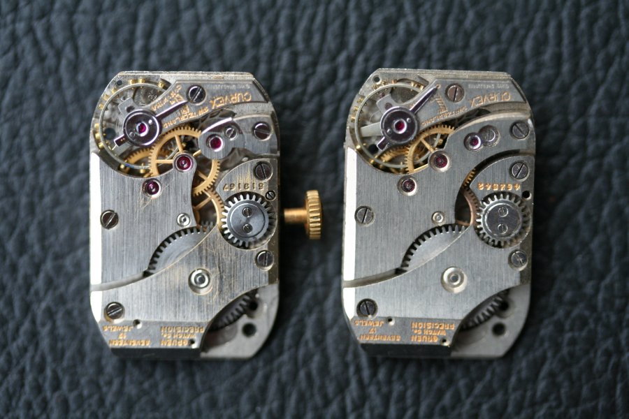 The caliber 330 is 17 jewels and is 7-3/4 x 11 ligne or 17.2mm x 24.81mm. It is the second Curvex movement that was produced by Gruen. This caliber is usually marked with the number next to the mainspring barrel on the exposed underside of the top plate.