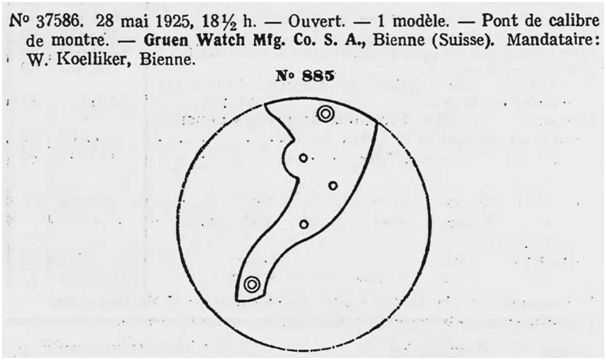 FHF protected it's according ebauche(s) in September 1925, one (452) with the "FHF"-design, one (453) as the 885 for Gruen: