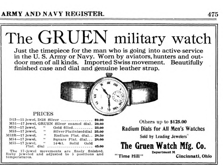 Home » The Gruen Model Database » 1910's and prior » Outing/Military wrist watch