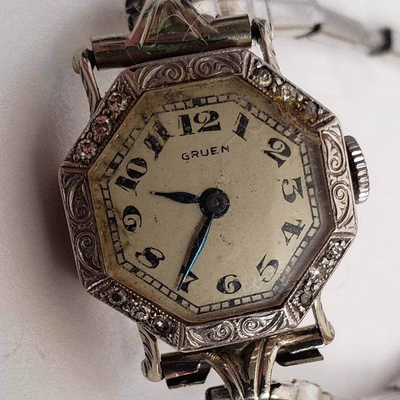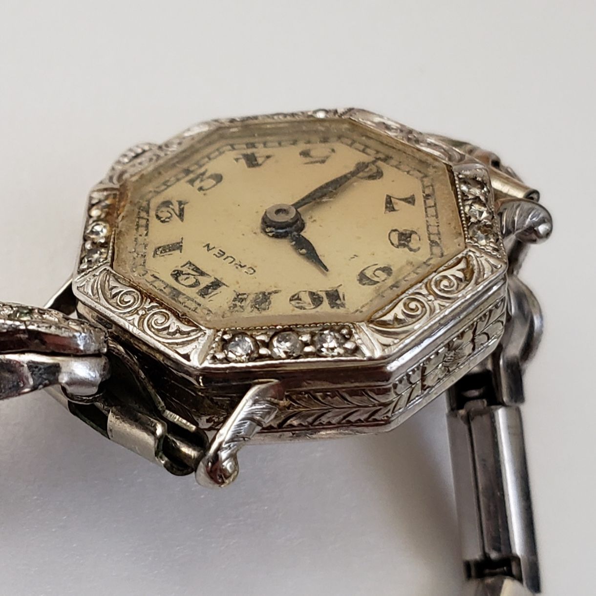 Other info : Plat. Faced, Gruen, 9338, O 103. 18k. Gruen crown; not original.