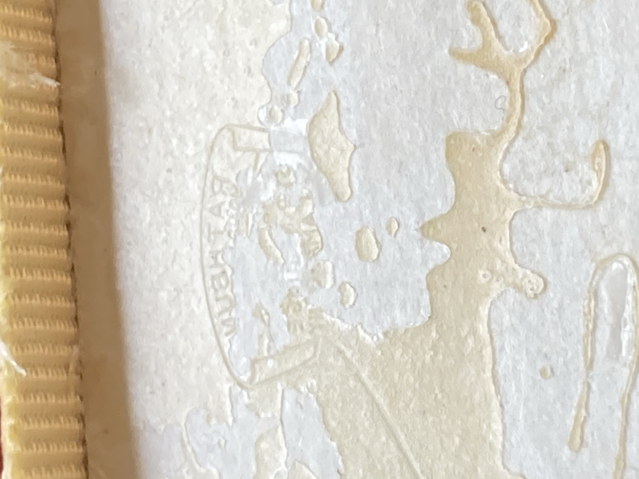 On this version, ribbon identifies if it is Precision or Veri-Thin. The men’s measures 3.75” x 5.75”, the women’s 2.875” x 4.75”, and there is a different holder for the watch. I have one with a broken base, and I found a mark imprinted in the glue residue: “Rathbun”, from somewhere in NY. Could that be the maker?