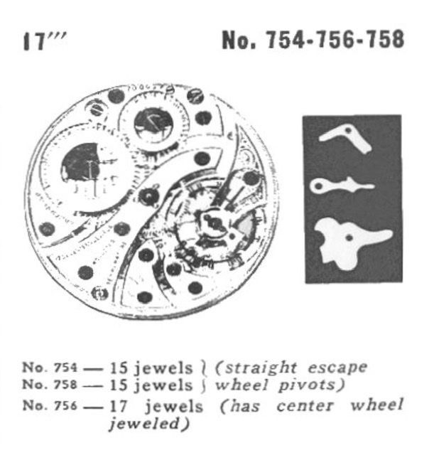 In fact, that looks the same as the caliber 740 in the 1926 parts catalogue. Almost as if the 740 is the 17 jewel and the 754 the 15 jewel version.