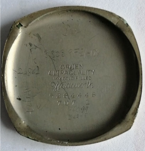 Both of my 61 examples carry : "Gruen, 14 karat, gold filled, Wadsworth, 707 1"