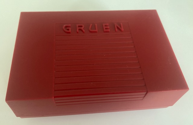 Home » Gruen Box Database » 1950s » Red square plastic “the precision watch”