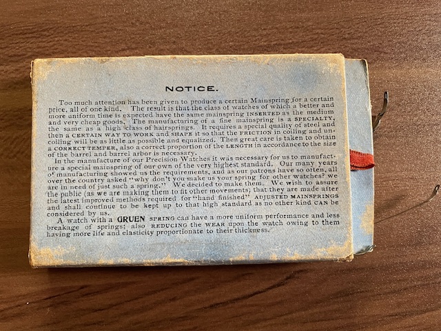 Home » Gruen Box Database » 1910s and prior » D. Gruen & Sohne - Hand Finished Mainsprings (Box o mainsprings)