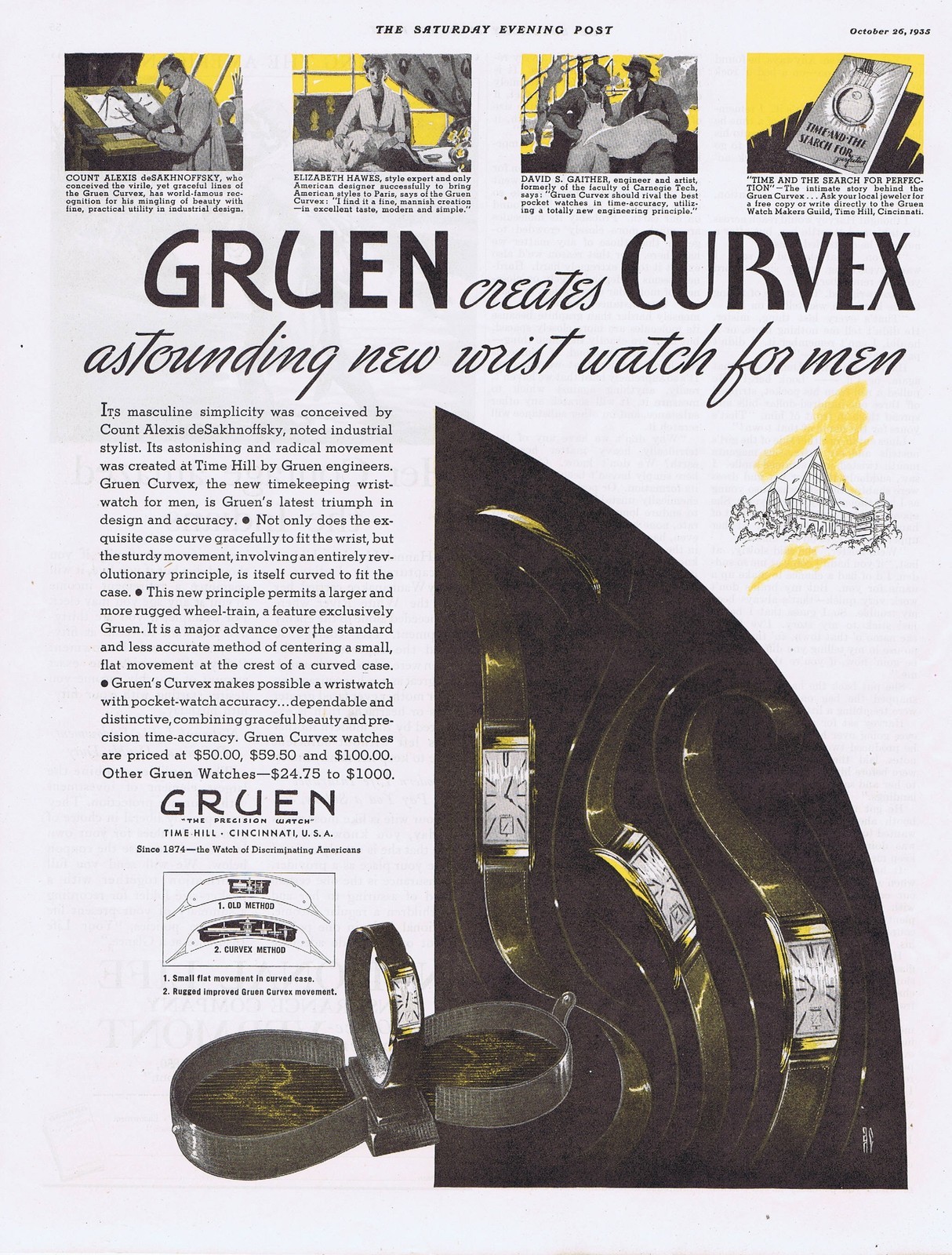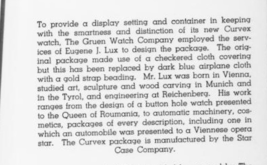 As far as I know, the leather box was used for the first Curvex models beginning in late 1935. There is a round paper insert that was fitted into the right side cover which described "introducing the Curvex". Kyle Rogers has a complete set of men's and ladies with the paperwork.