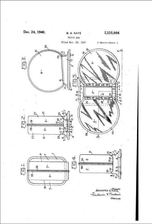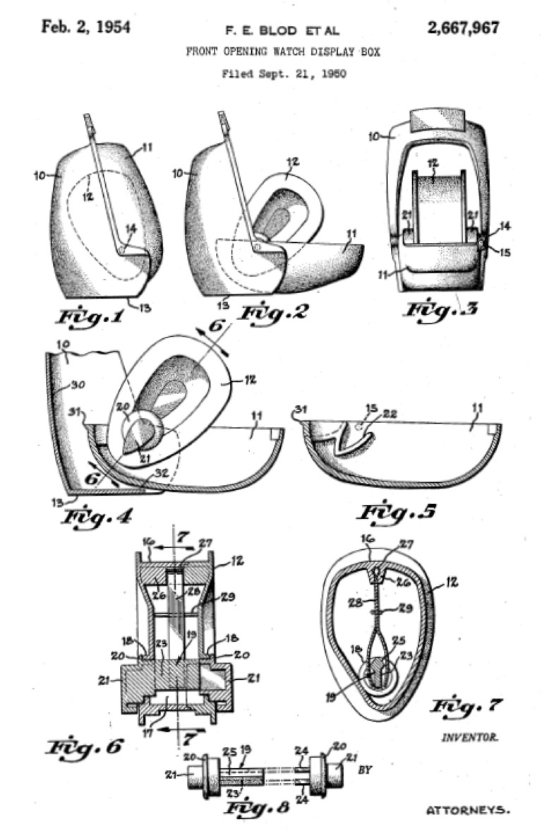 Said box was protected for Gruen by two patents, i. e. by patent No 2,667,967 and by Design patent No 161,898: