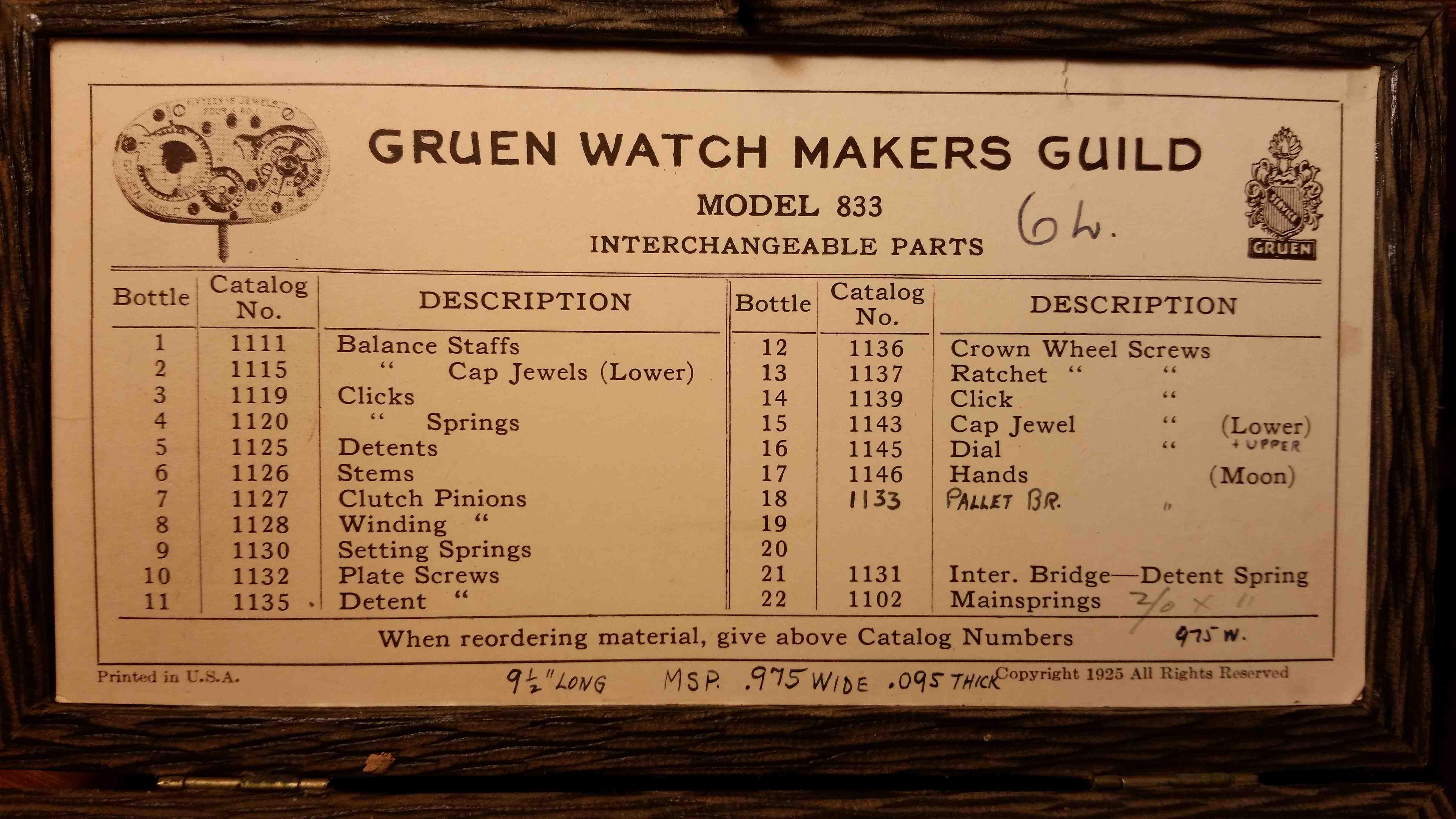 In the lower left corner there is O-S-1 = 707. In the guild 1929 book there is a caliber 707 mentioned with the case style 1. In the 1926 standardized parts and guild 1929 guide there is one OS1 combination mentioned, with the caliber 101. Is there anything to "see below"?