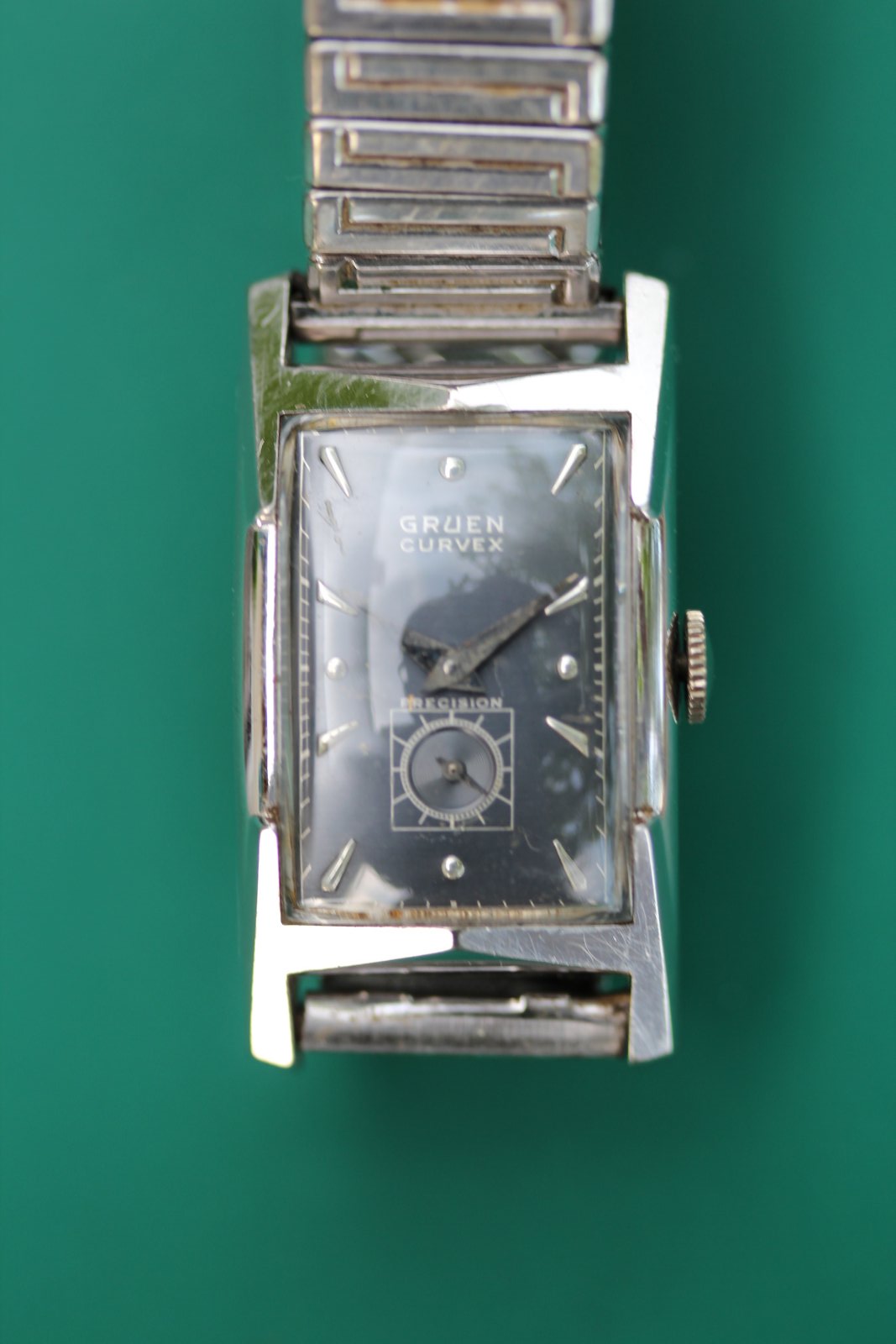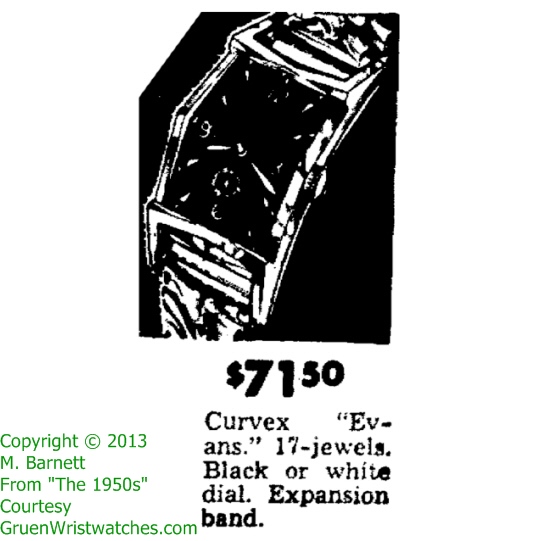 I don't believe you watch is a Curvex Evans. I don't know what it is despite spending some time on it. HolbensFineWatches was nice enough to donate the photos for this post. The illustration is from "The 1950s" page 165. Is is the peaks on the sides of the case that was the tip off for me.