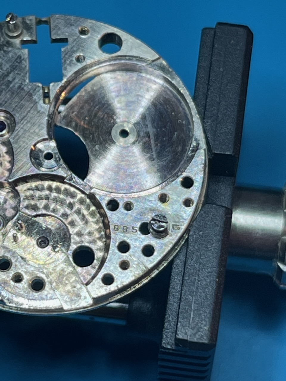 The 885 is another common one out of the caliber stable. I've one on the bench and thought I should take some images. Afire has this post on his very fine watch, which I think is the only other one that clearly IDs what the movement is. An ebauche finished by/for Gruen from FHF. However, Afire state 324, Ranfft indicates the cal 1146 by FHF. There is a clear stamping with the FHF mark.