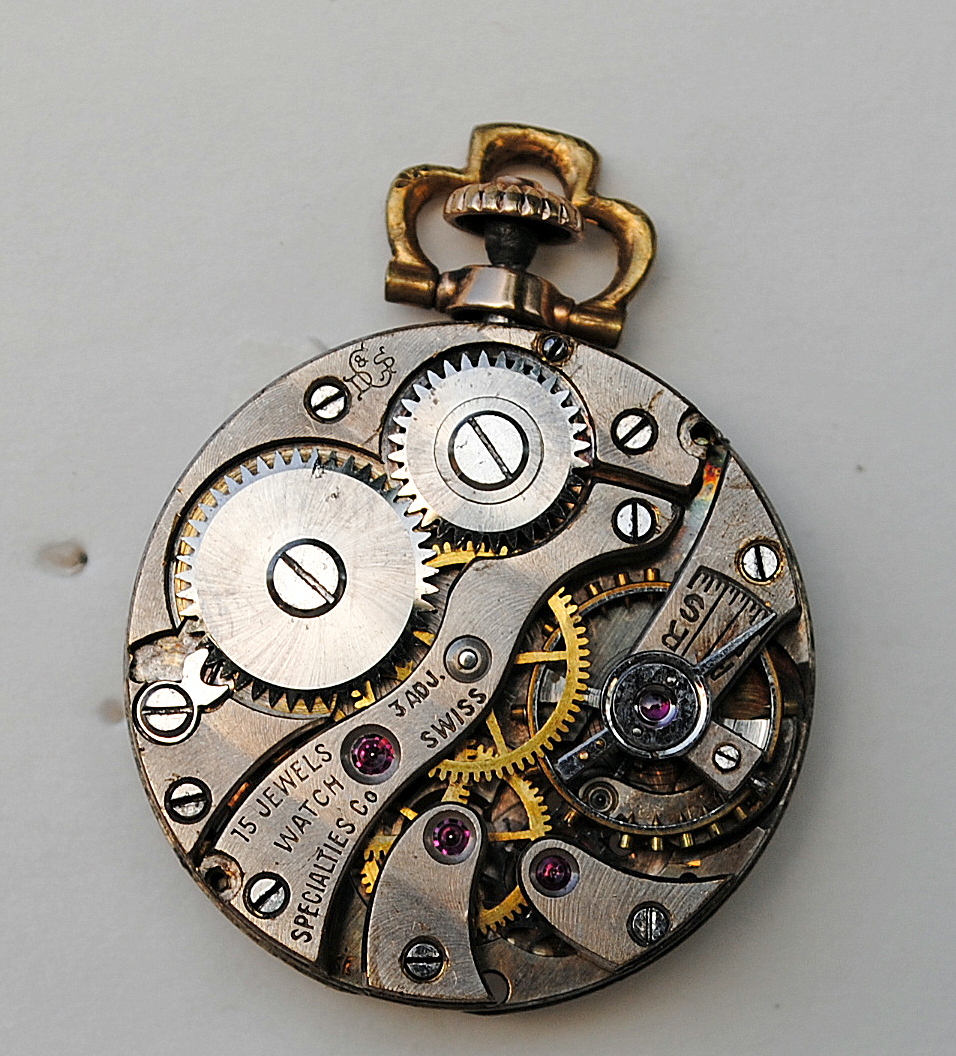 Item 130478264681 is from Favre’s Primrose line. Same setting works vs Mike’s above (but complete); same front plate mark style. A 1920s version, so now with identical click and stud carrier to the Guild era 126 mentioned above. Not marked for US export, so no jewel or adj count. Front plate sn E 87.