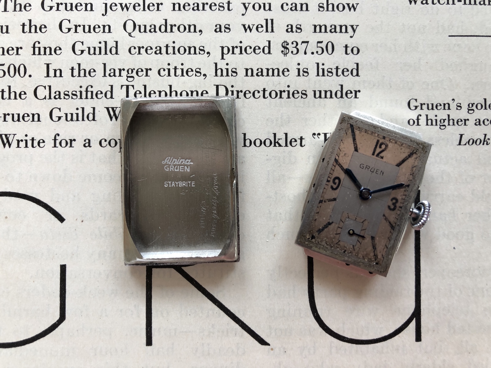 I also have one Alpina-Gruen with the Staybrite marking which makes it more likely being pre 1933 but I would not take it as a proof.