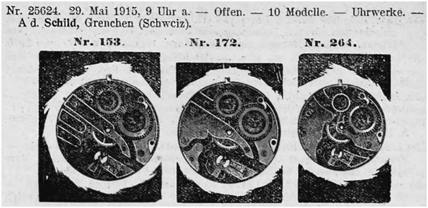 This is an interesting one. I totally agree that the movement was made by A. Schild. Here is the registration from 1915, called #153:
