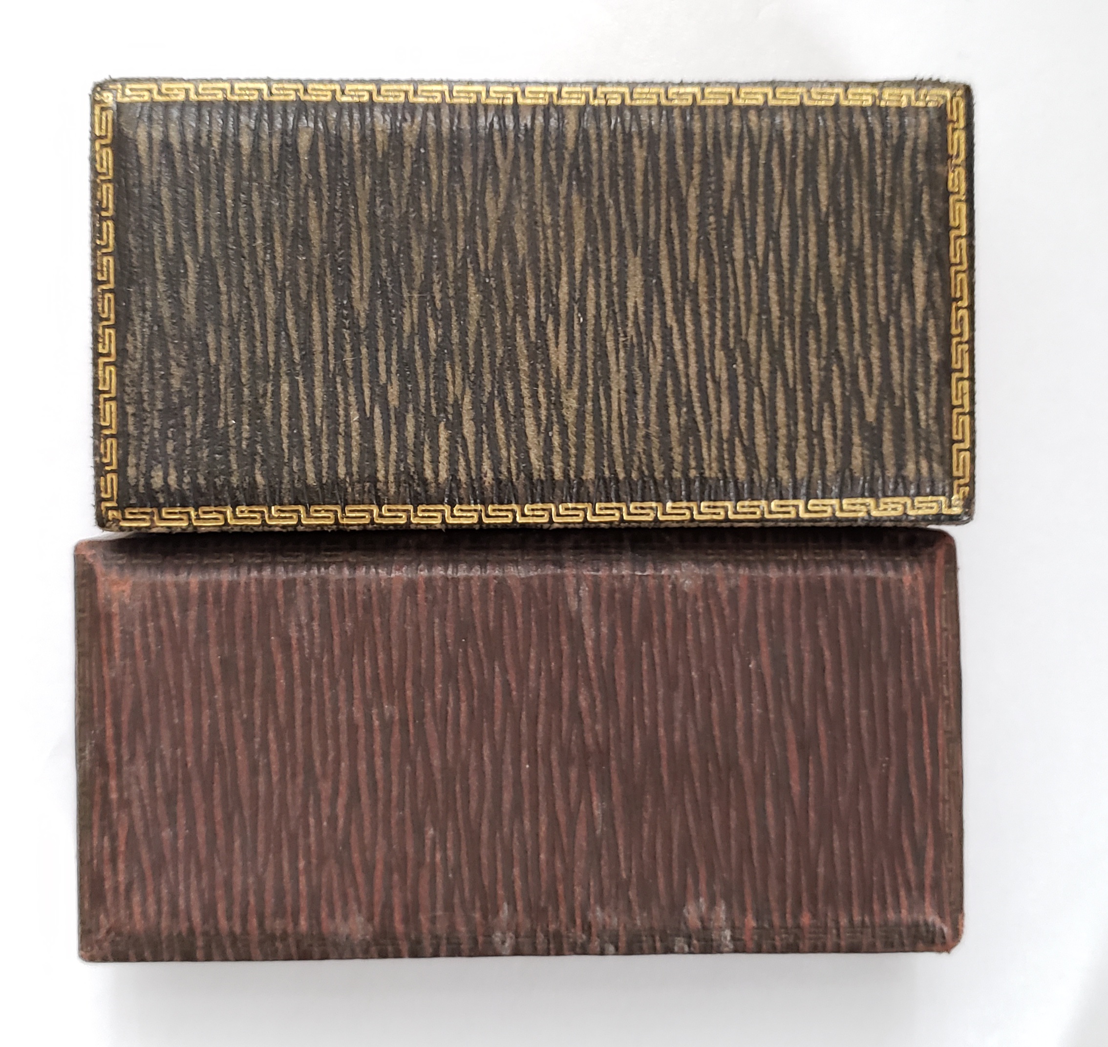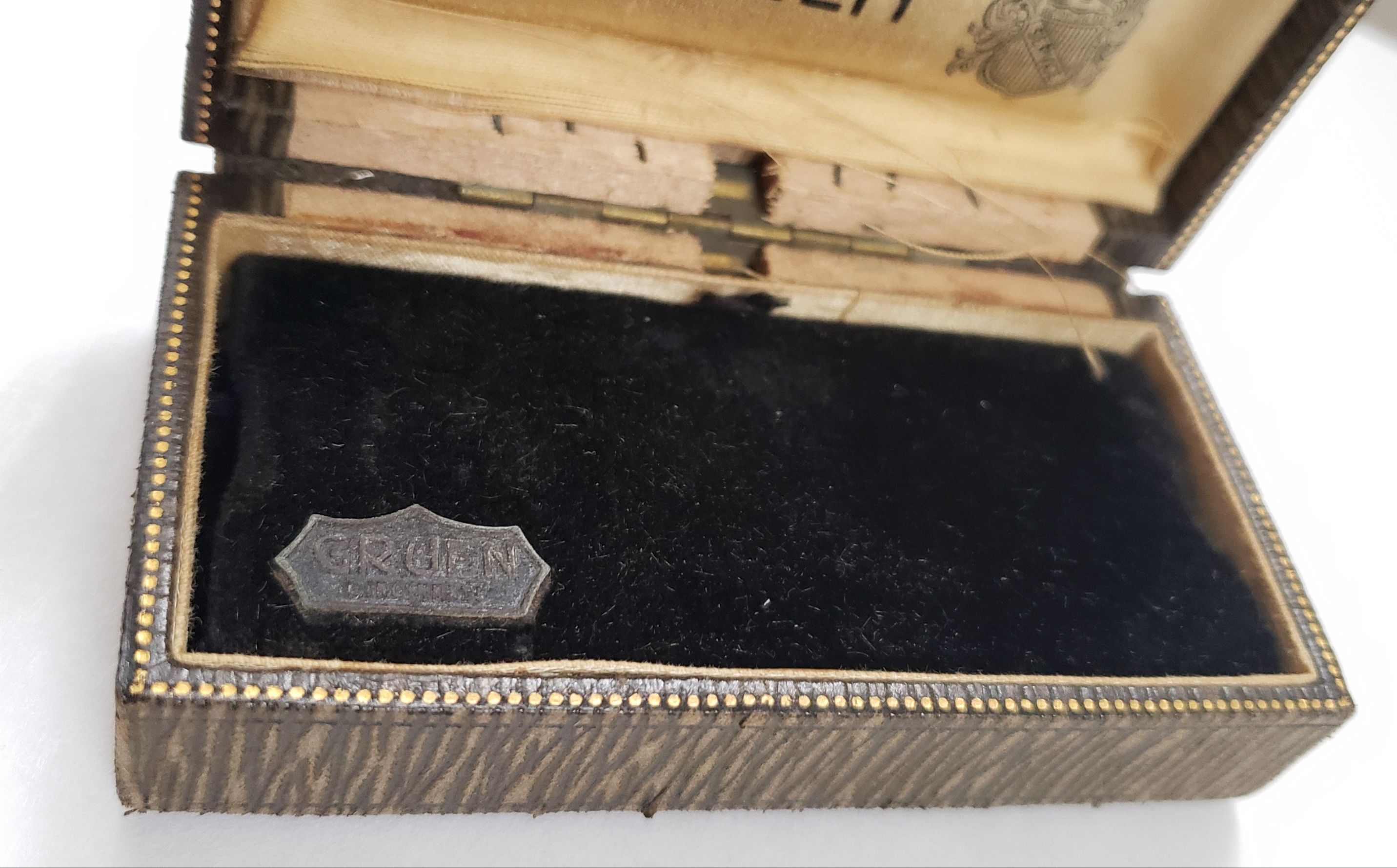 Yes, possibly for 14k Cartouches. Heres a pic from my collection showing the closest match to my box, many similarities but biggest difference is mine lacks metal clasp other than that they are close, minor difference the colour. Key similarities, size, false bottom, notched black velvet pad for ribbon attachment, etc. I'll have to dub czech but I think thid dates from 1929. And I believe my box predates what I am showing here.