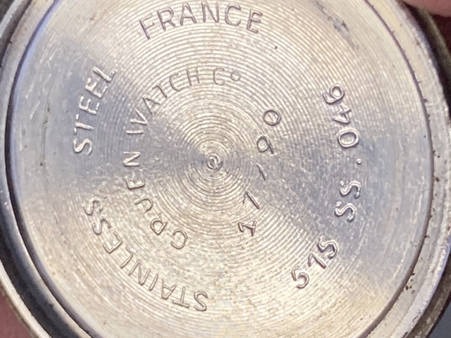 Probably I should also post info about my 515SS based watch. Mine is style # 047, case serial number is 4975, so probably pretty early. It is a 1957 Super Gruen Pilot, also completely marked France on case, dial and movement. It is Strap 007, and therewith has the license to kill, most likely with the Radium lume...