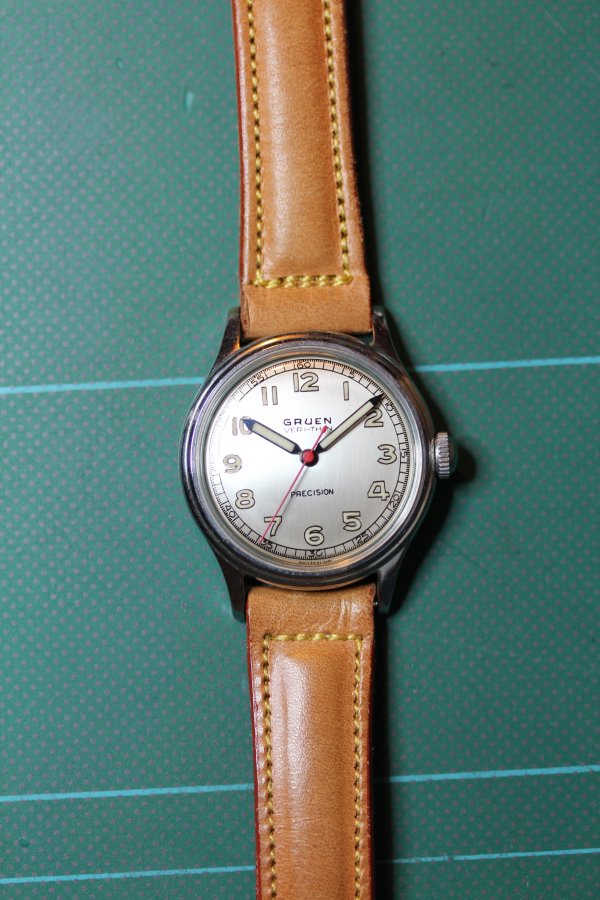 Bracelet : Leather, original Gruen signed with generic '40's steel buckle