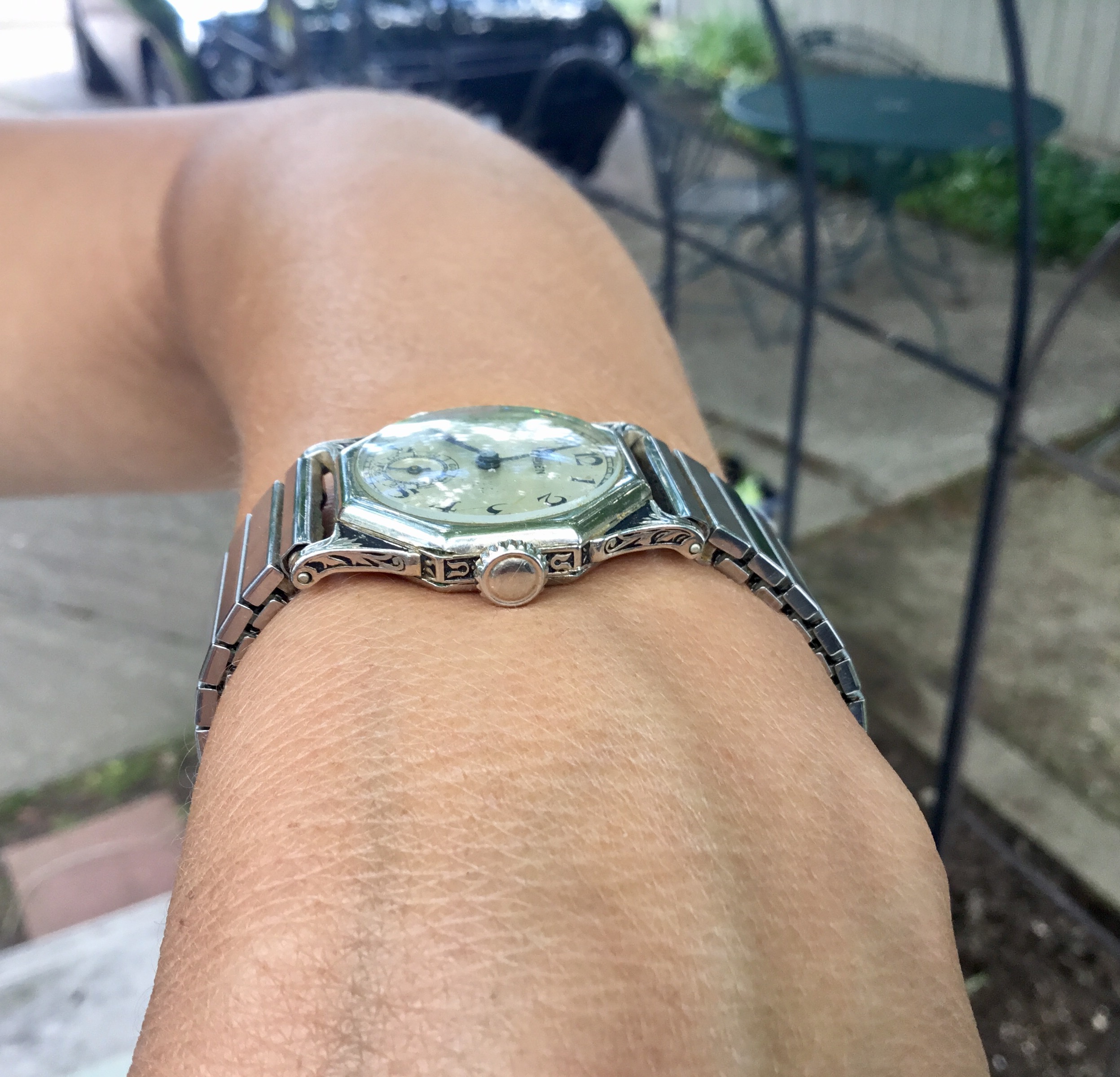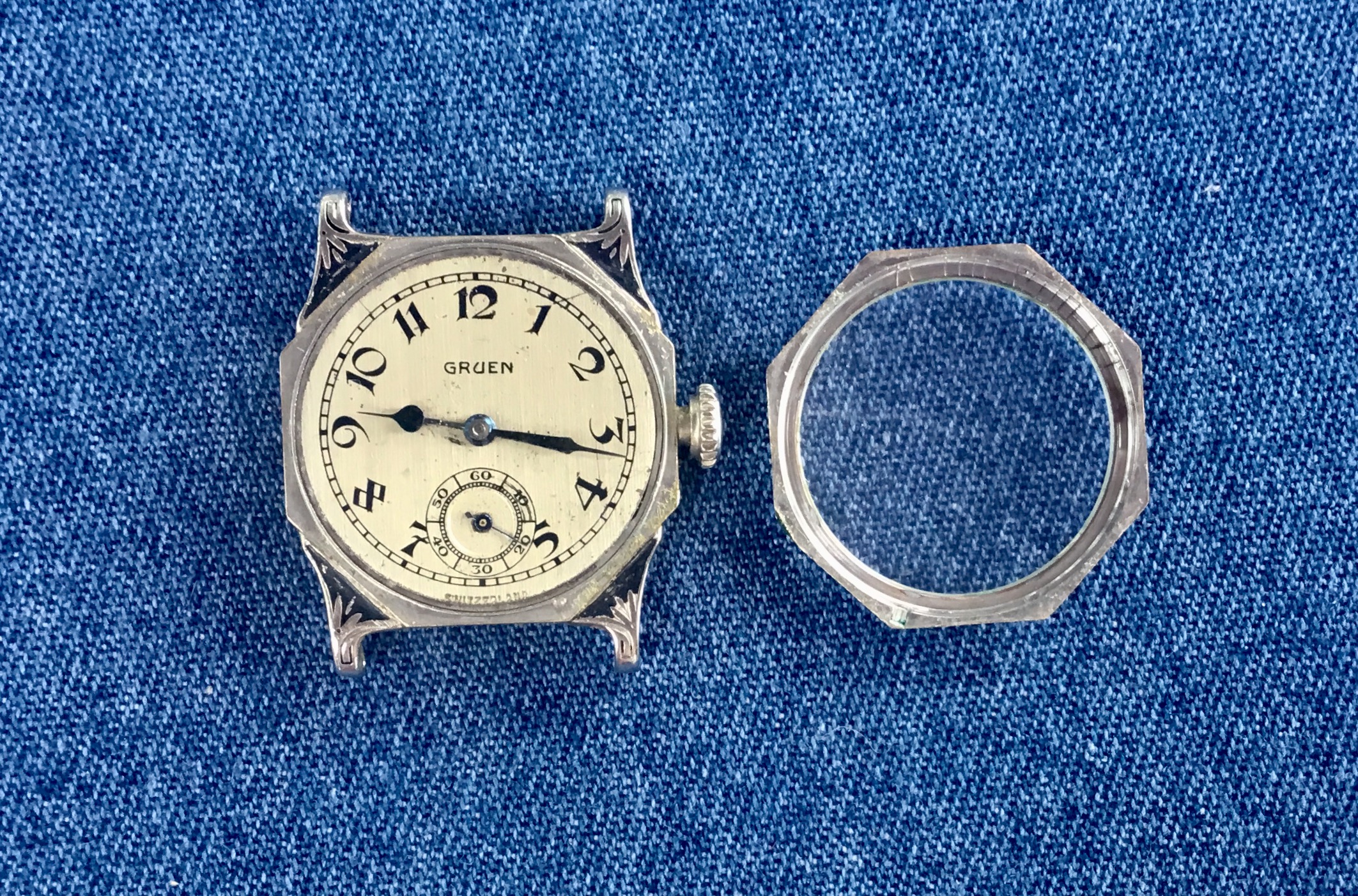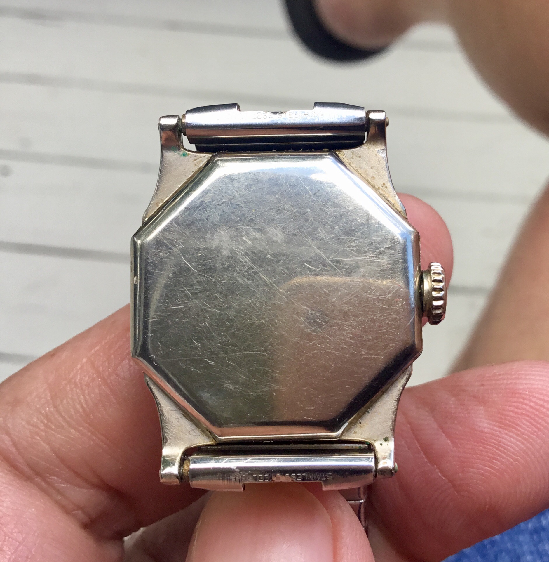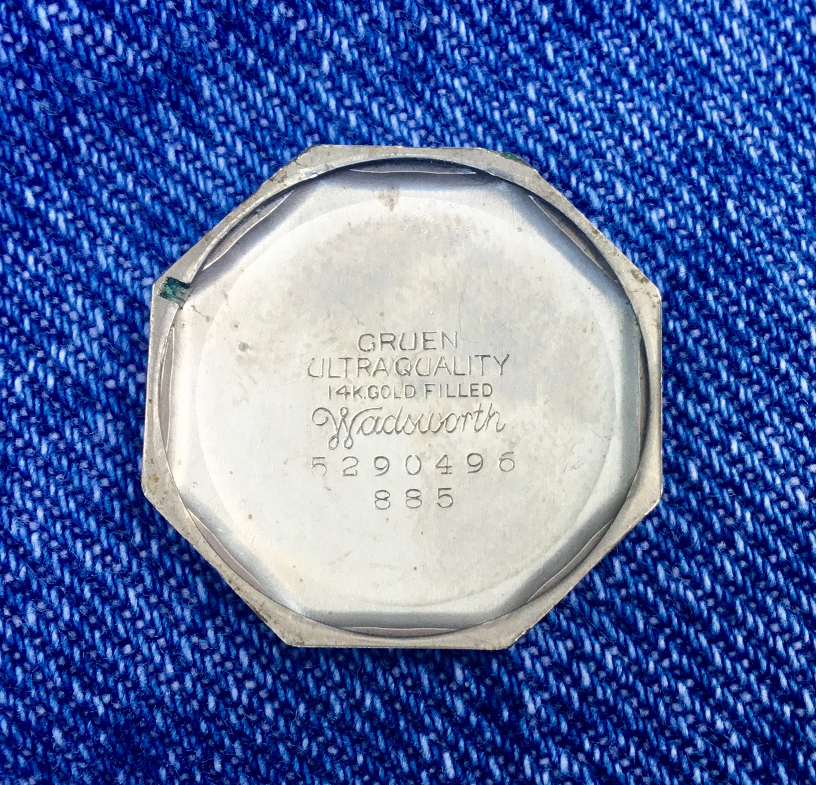 I recently added this watch to my collection! My research has come to a dead end, not only for the case style but for the dial itself! The unusual octagon shaped bezel with the beautiful engraving adds to the mystic of this Wadsworth case! The font on the dial is also unique, the numbers are positioned pointing towards the hand shaft, the European style 7 is found only on a very few Gruen dials, I believe it first appears in the early 1920's! This watch is running and it is in fantastic condition! It measures 32mm lug to lug x 25.5mm excluding the crown x 8mm thin! I know watches where small back then, but is this size still considered a mans watch? Any help with this model would be appreciated! Respectfully Michael!