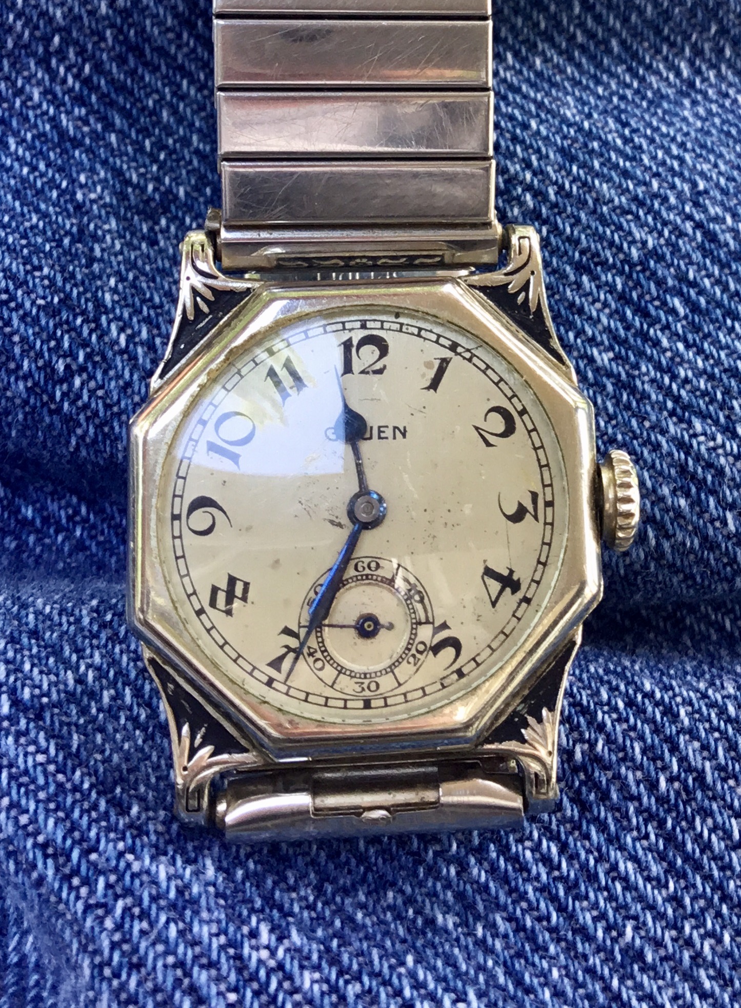 Great bold deco styling and rarely seen. Definitely a men's watch, and not all that small by the standards of those times. I wear smaller Gruens and I'm not all that small by the stardards of these times.