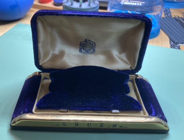 Home » Gruen Box Database » 1950s » blue velvet cushion gold