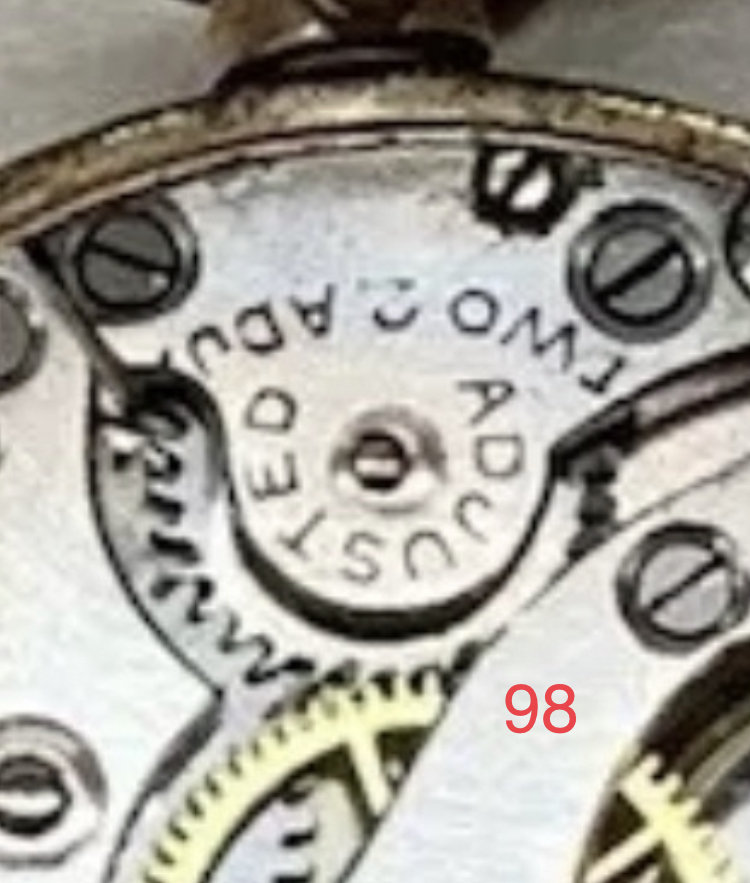 The 98 stamped movement has 4 adjustments. No precision marking but has a precision marked dial. Has the 51482 patent #