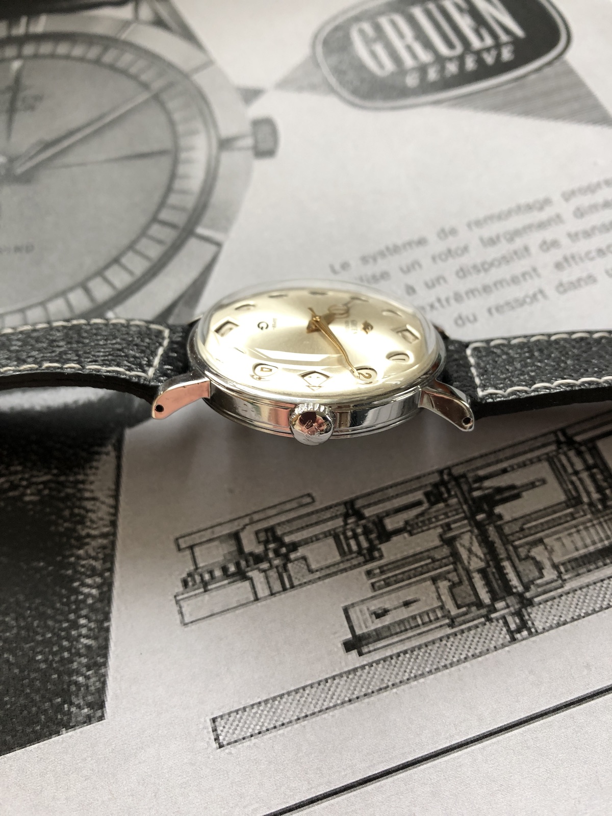Though some feel that the Gruen company kind of seized to exist when the Gruen family sold the company in 1953, I feel that actually did not happen until 1960 when Henri Thiébaud resigned as MD of the Biel plant.
