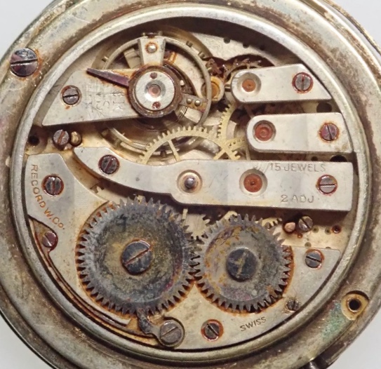 Different sources like the "Classification of the Swiss Watch Movements" by Jobin call this the cal 137, and in the web you can find a wild mixture of 137 and 153 pictures. There seem to be two different click springs existing, the original one shown in the registration being the one used here in these movements. Jobin is showing the same picture as Caliber 137, so I do not know which is really which or if they in the end are the same during the years. Nevertheless the Record movement shown here can be dated to 1915/16. 1915 this caliber has been introduced and in 1916 the Record Watch Co became the Record Dreadnought Watch Co. not using the Record W. Co. Logo anymore.