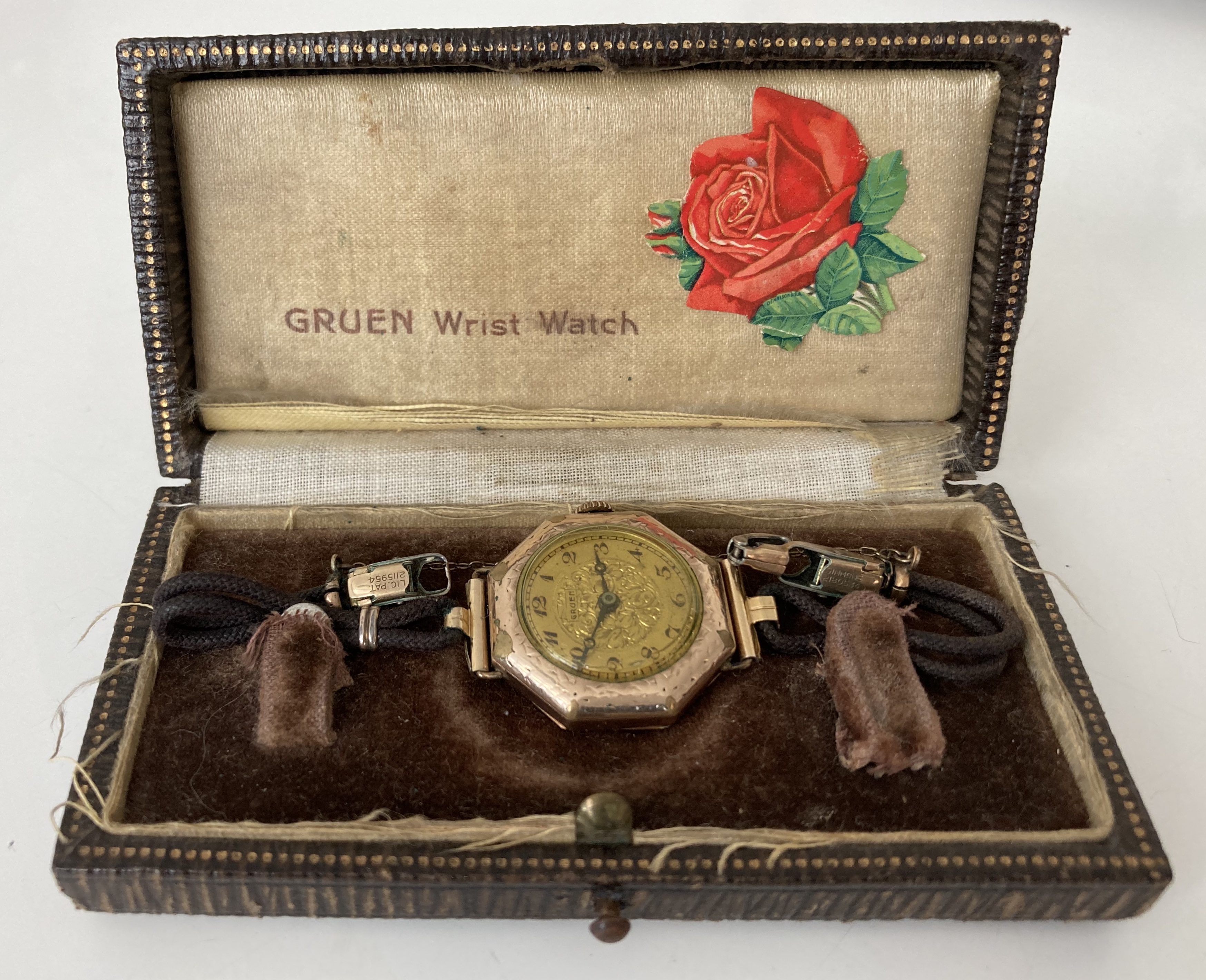 Home » Gruen Box Database » 1910s and prior » Brown ladies wrist watch Box (With sweet detail)