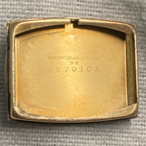 Other info: According to the master book, this model was introduced with caliber 681. This is a later, raised gold numeral dial variant, which now uses caliber 485. Some places note 485 was introduced in 1935, but I would say this is earlier, ca. 1934 production. I think 681 may have been discontinued by that time. Of note, there also appears to be a Caliber 179 model that uses Style number 99. Perhaps a lady's variant, or at least a strap variant to use a round caliber? I have never seen an example.