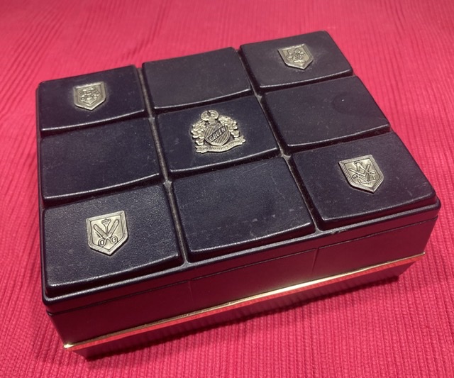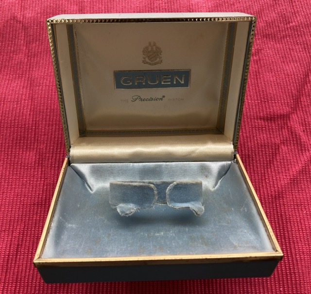 3 This sign contains a scissor and a thing that probably is a round head pin. This sign was used by tailors. Don't know what this has to do with Gruen, except the box has a fabric lining.