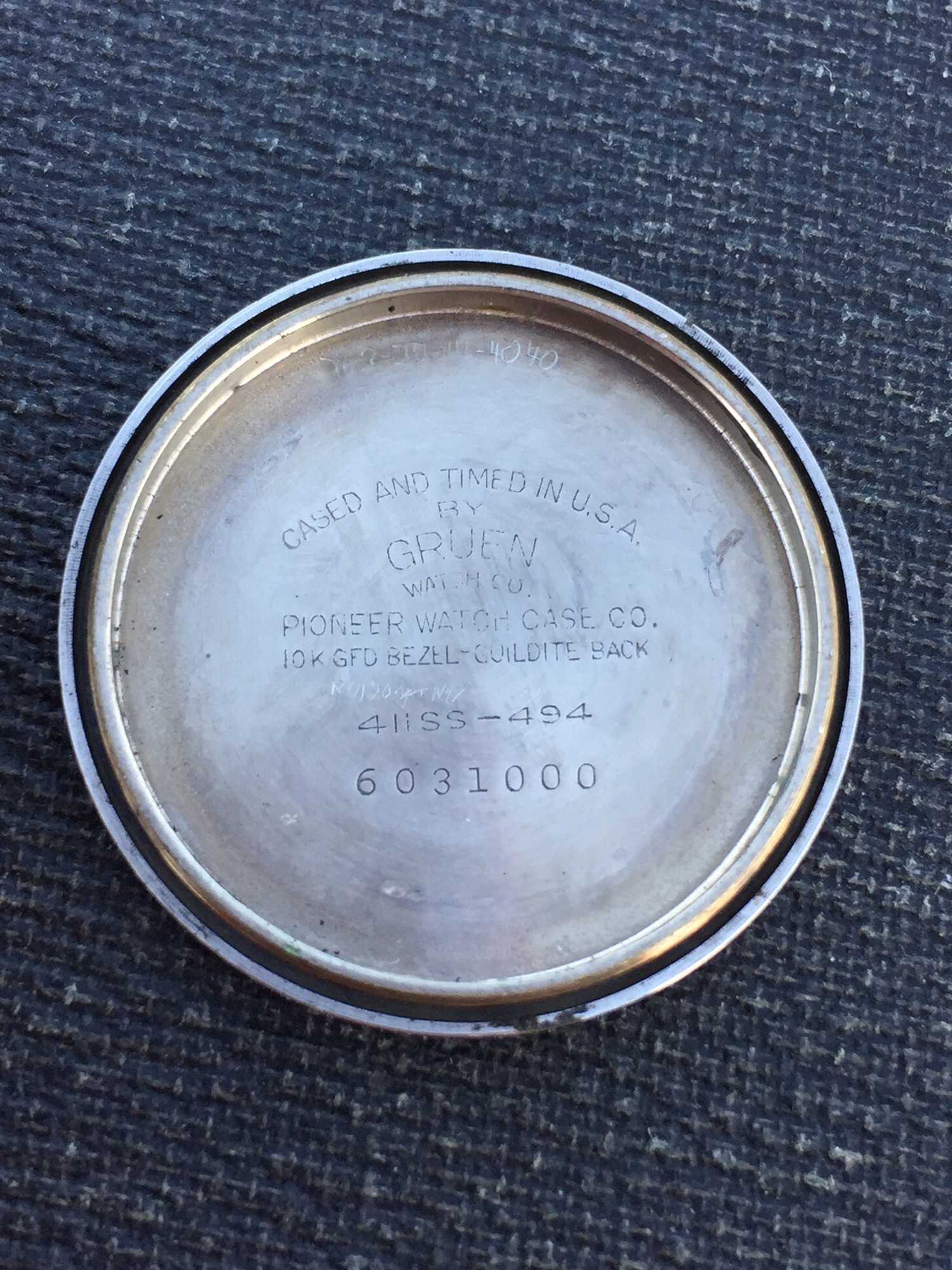 Dating it: Patent dates to Jan 1941, as does ad (June) and style number 494. The movement sn others have dated to 1943. The first service mark appears to be from July 1941, a second from Nov 1947. I’m guessing 1941 is indeed the make.