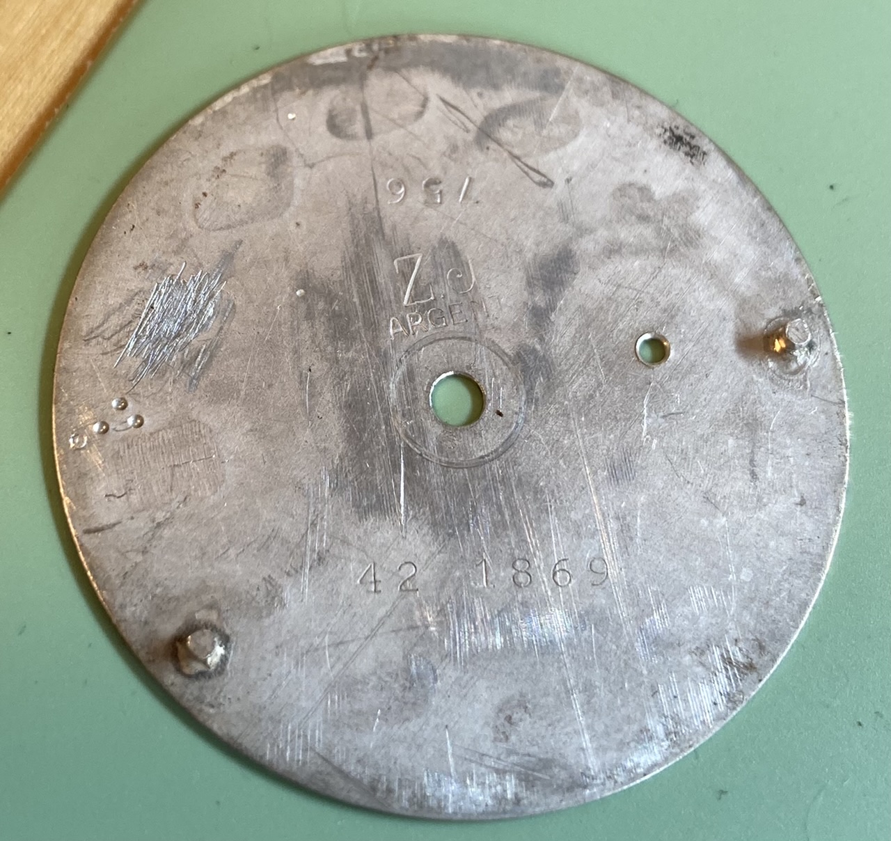 Other: The detent and detent spring make it hard to pull out the crown to set the watch. Dial made by Flueckiger et Fils/ Zelim Jacot dial factory: https://www.diju.ch/f/notices/detail/6494