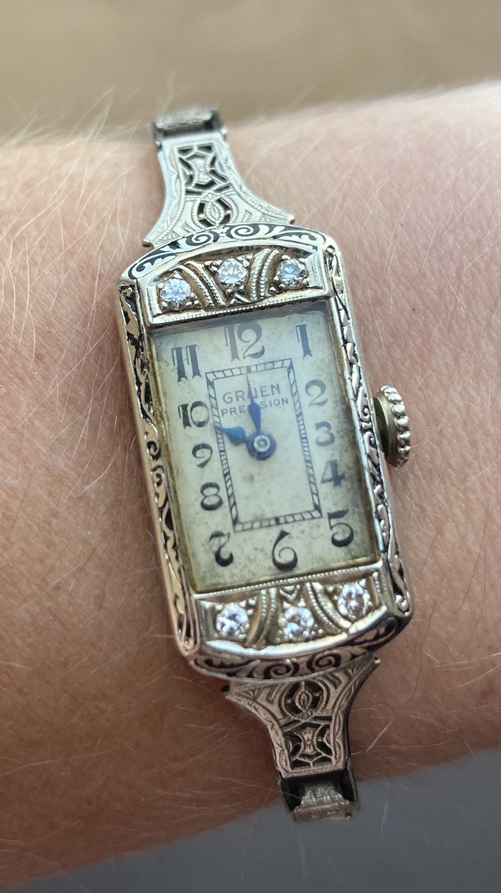 Also added a period correct filigree strap that has definitely lived her life. Smile