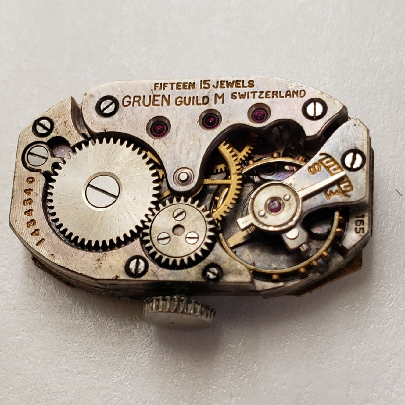 Another example with different dial. Lower case serial. Movement 153 with many similarities to your 165. Even the pinkish shine on the movement/bottom plate.