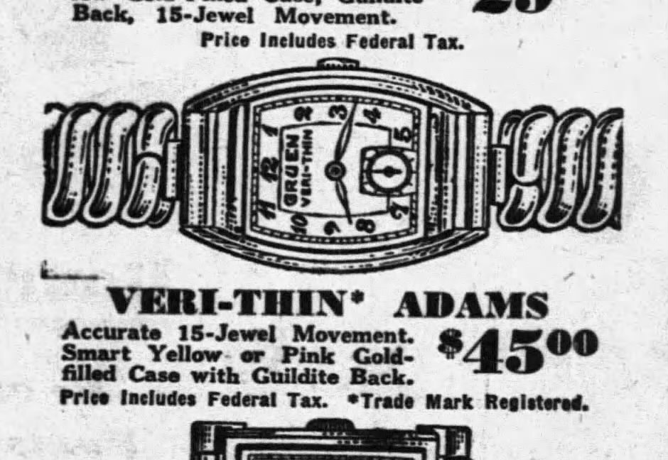 Anyway.... it is certainly the same case design from the ads, as the Adams. Isn't the first time that Gruen seemingly swapped a feature, such as band or case color to justify a different name. Thank you Barney; I've made some changes to the OP to reflect this.