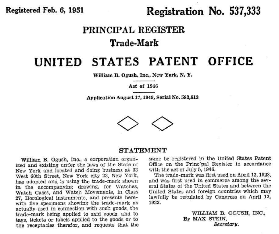 That was interesting. I had always assumed that William B. Ogush was the "Ogush" of "Katz & Ogush". It turns out it was his brother Benjamin Ogush.