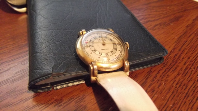 This watch was in a box with some old coins, Army ribbons and assorted stuff and packed in the bottom of a foot locker my father has had since the end of WWII - I never saw the watch when I was growing up and the foot locker has been in my basement for the last 20 years. I knew there was some old jewelry in there but never paid it much mind. Decided to go through it all and hand it off to my sons and when I turned the stem on the Gruen the second hand started and I found after all those years it works just fine. I've no idea what it is. The case measures 32mm, the back is marked Gruen, 10k gold filled and other than obviously being worn in its day there is no damage anywhere,crystal is intact, unscratched. What is it and could someone recommend a place I can send it, in trust, to get it cleaned and serviced?