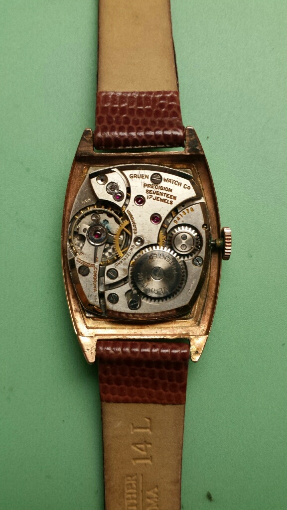 Here is a question... Does it take the new model or old model type winding stem? I'd think that this was an early 1940s, if not late 1930s watch style. However, the movement serial is in the 1944/45 range. Movement swap maybe? The watch case maker K&O continued as simply Ogush and this change does seem to occur about 1940. Looking through the 'Gruen Time' company news letters, Ogush also became a member of Gruen's Board.