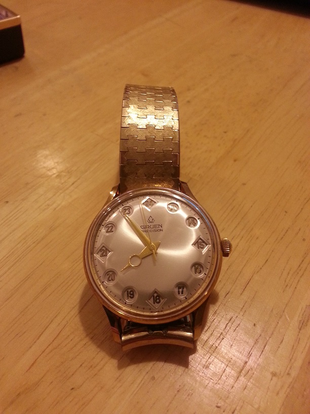 Thanks for the info guys, it's definitely an interesting piece. The newest development is someone wrote me from the forums and purchased it today. It's good it's going to a collector who will appreciate and use it, not just sit in a closet collecting dust! So I was a Gruen owner for a whole 4 days, wristwatches don't last in my job working under truck and with machinery all day long...