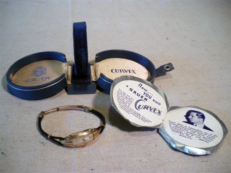 As far as I know, the leather box was used for the first Curvex models beginning in late 1935. There is a round paper insert that was fitted into the right side cover which described "introducing the Curvex". Kyle Rogers has a complete set of men's and ladies with the paperwork.