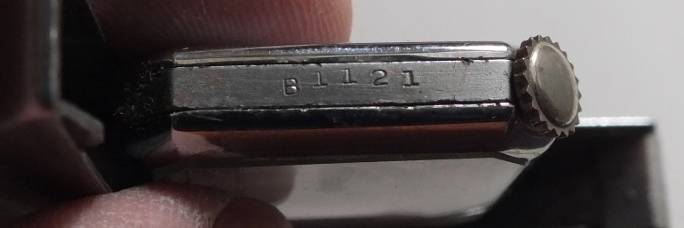 I believe Jenneke's Carré was originally covered with leather or reptile skin. The narrow groove on the edge of the cover without the opening button was used to secure the skin. Also, I have a leather covered one with case number B2669.