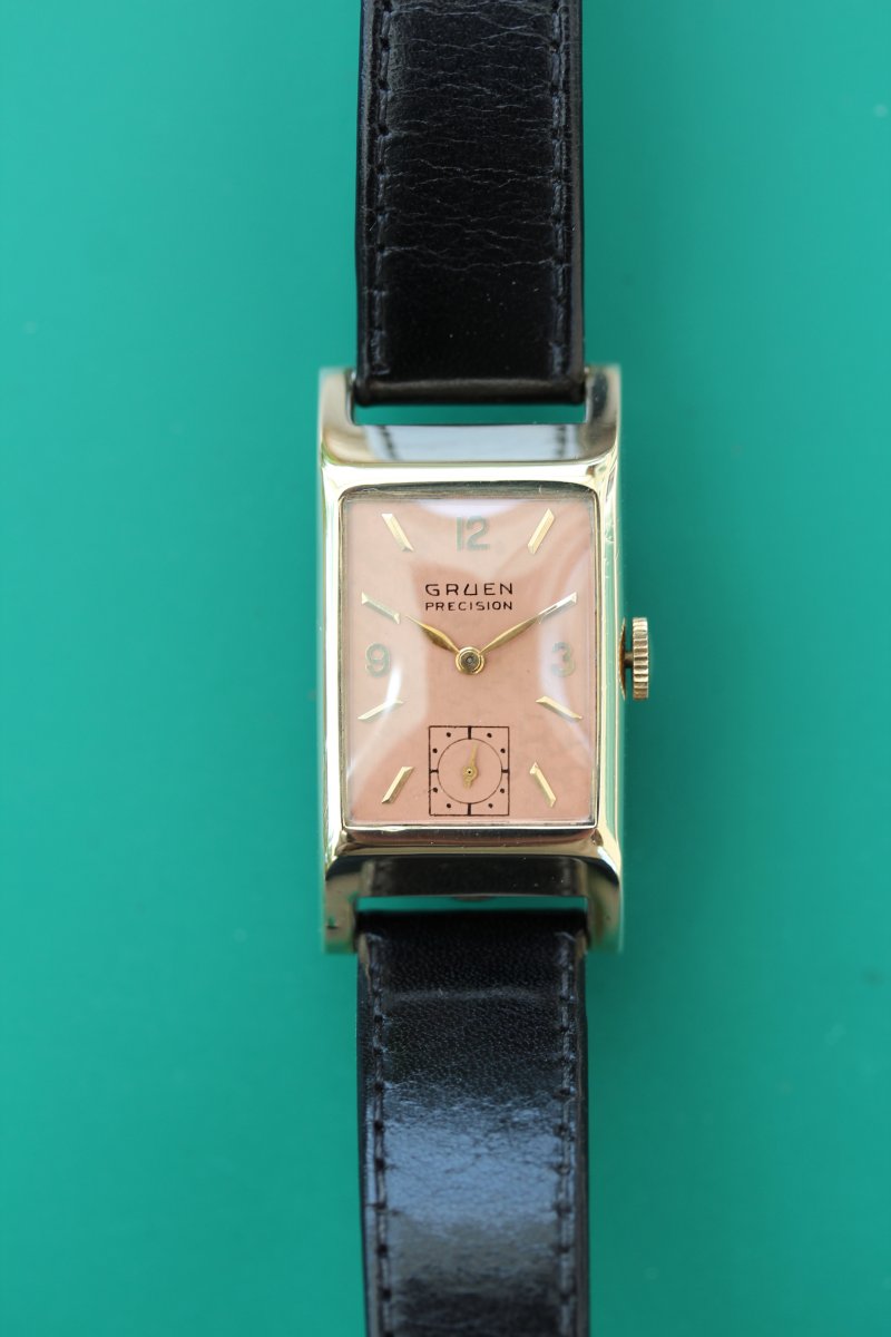 Home » The Gruen Model Database » 1930's » 21 Jewel 14 Karat Quadron (14 Karat Yellow Gold Tank)