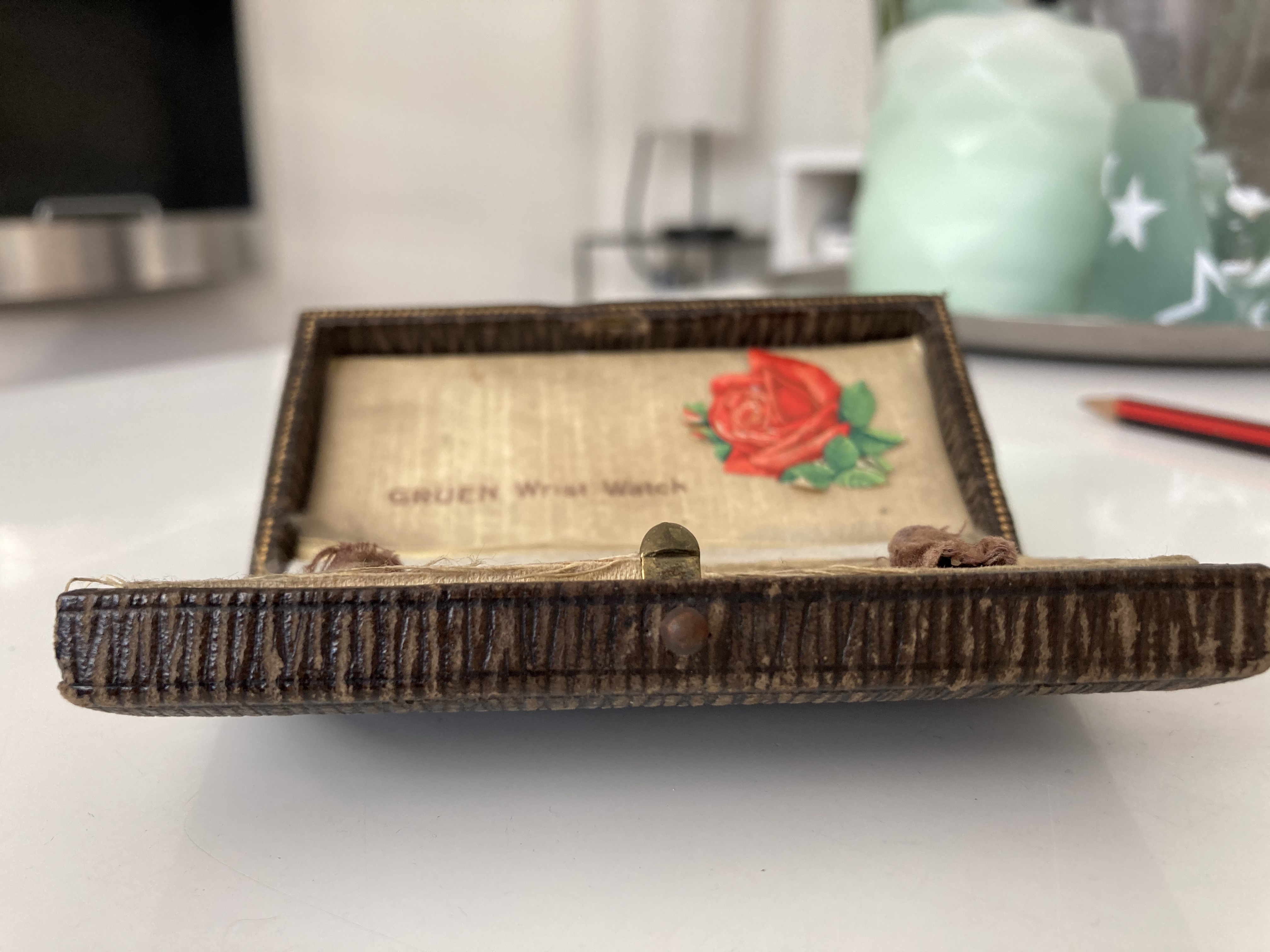 Home » Gruen Box Database » 1910s and prior » Brown ladies wrist watch Box (With sweet detail)