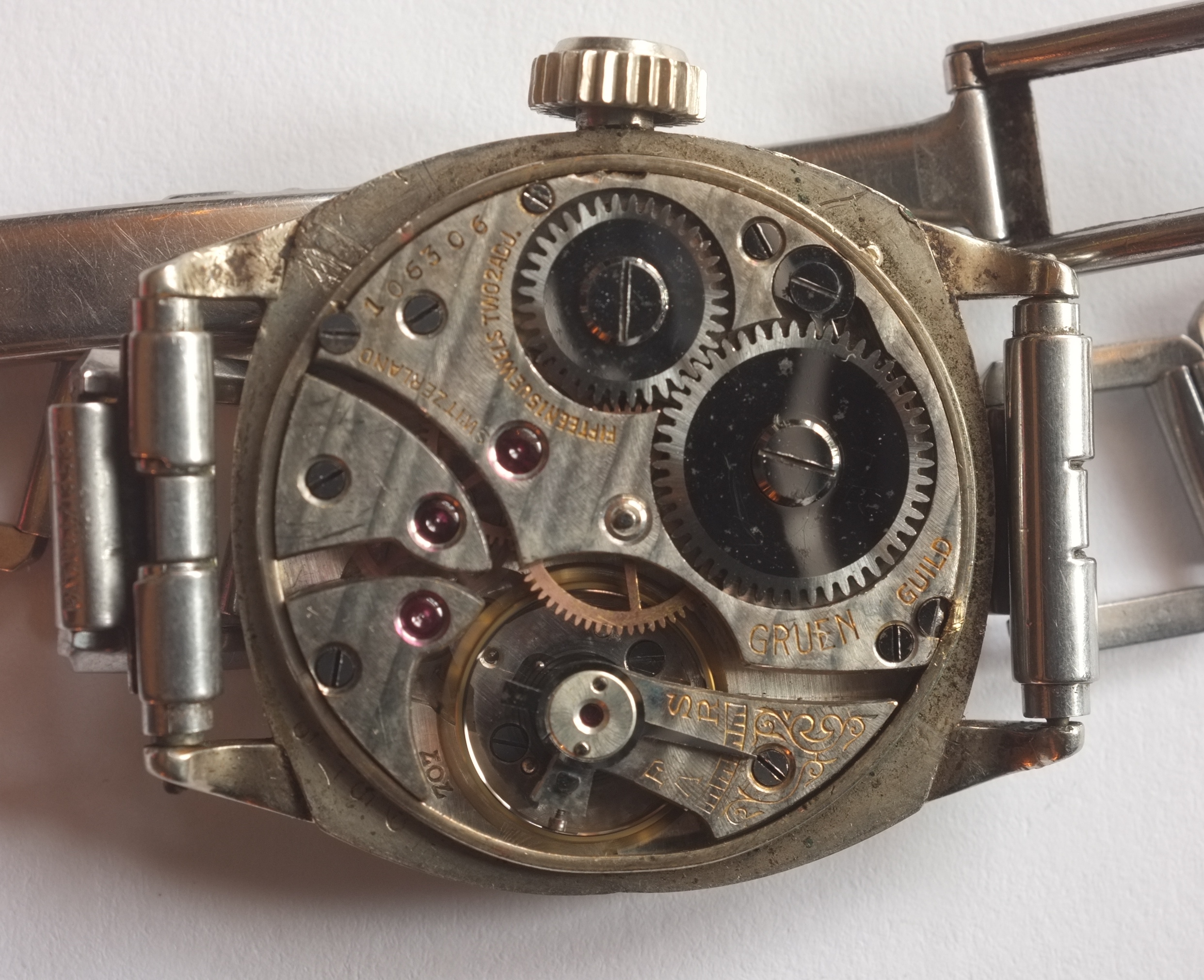 -1926: Wadsworth gets fed up with deceiving the public with reinforced, signs a pact with other casemakers that all cases will be marked gold filled. Gruen comes on board (willingly or no), and the Ultra Quality gets a purity mark. See "14k gold filled reinforced with extra gold" and "Ultra Quality 14K Gold Filled" (as on Matthias' post above)