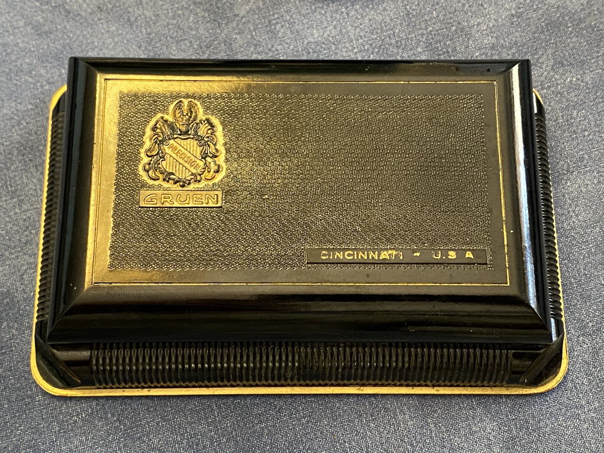 Home » Gruen Box Database » 1940s » 1941-45 Plaskon box in black and gold