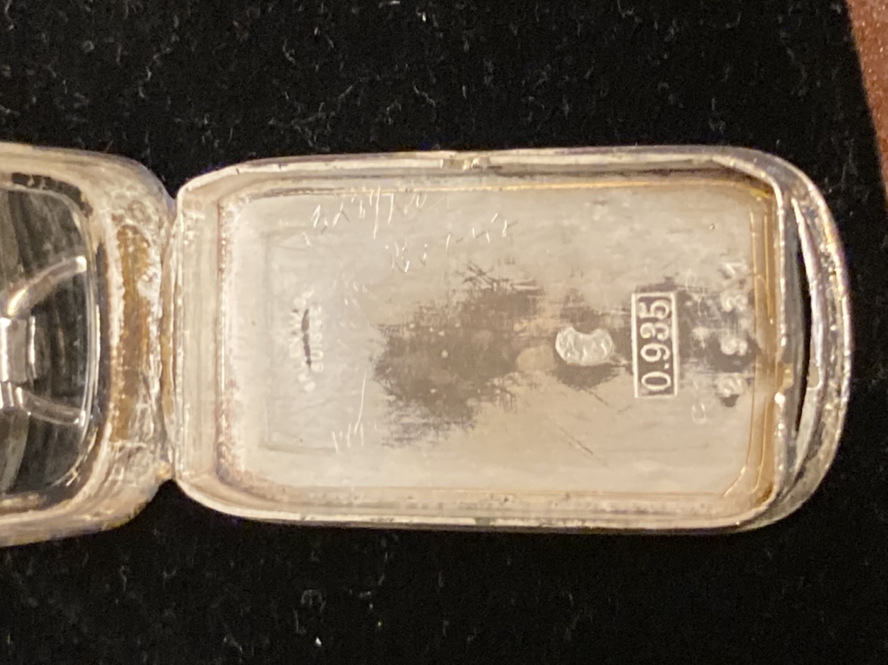 Jenneke—I’d totally forgotten yours! Thanks for the reminder! Yes, yours is an original dial. You can see how well it fills the space vs mine. And like yours, mine was likely originally printed & lacquered directly over the sterling silver metal of the dial. Yours predates mine by 600 case numbers, and both were assayed in Geneva.