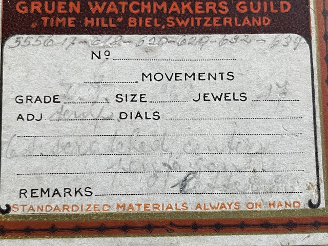 Home » Gruen Box Database » 1930s » Gruen Watch MFG C - Standard Materials Box no. 5 (600 Series Movements)
